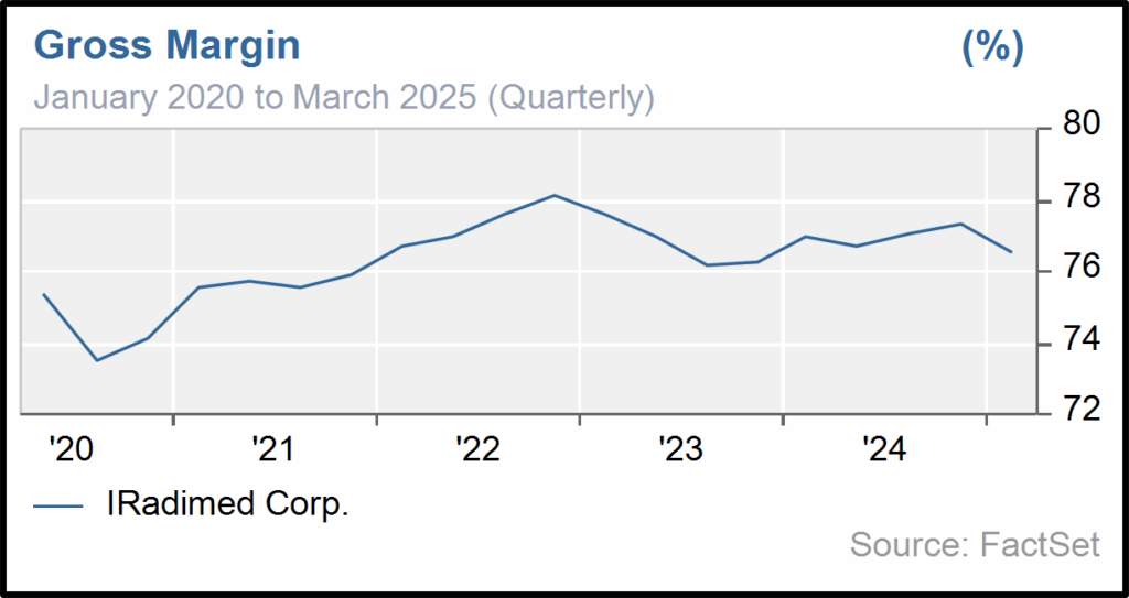 Susi founded Iradimed later in 2004 with a focus on making an MRI compatible IV Pump. The company operates in a highly specialized and proprietary segment of the medical device industry, where new entrants face steep R&D requirements and costly FDA approval processes that can take years. IRMD benefits from a near-monopoly position, allowing it to command premium pricing and consistently generate gross margins above 75%.