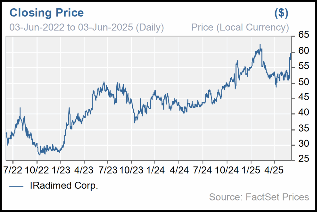 Iradimed aligns exceptionally well with Shaker’s investment philosophy, demonstrating sustained revenue growth (18.2% CAGR over 5 years), strong gross margins consistently above 70%, and quarterly EPS growth driven by pricing power and operational leverage. We expect revenue growth to accelerate as new generation of pumps replace first generation pumps at the end of their useful lives. Further, we believe there is a real opportunity as hospitals with IRMD pumps will buy more given the ease-of-use of the newer generation and IRMD will continue to penetrate hospitals and enter new markets. With no competitors in the MRI-compatible IV pump market and a patented product line, IRMD enjoys a defensible market position and clear path to continued dominance in a specialized, essential segment of hospital care. The company generates recurring, stable revenue from a growing installed base, while maintaining positive earnings, strong cash flow, and conservative financials with nearly no long-term debt. IRMD also boasts over 30% insider ownership and continues to innovate around its core technologies, supporting long-term organic growth and potential for strategic acquisition.